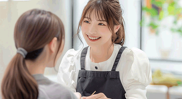 サロンワークやアートも教えていただけたり、授業内容も個人に合わせた内容で行えるのもありがたいですまた、 転職や開業のサポートもしっかりしているので、いつも色々と相談に乗っていただいてます!